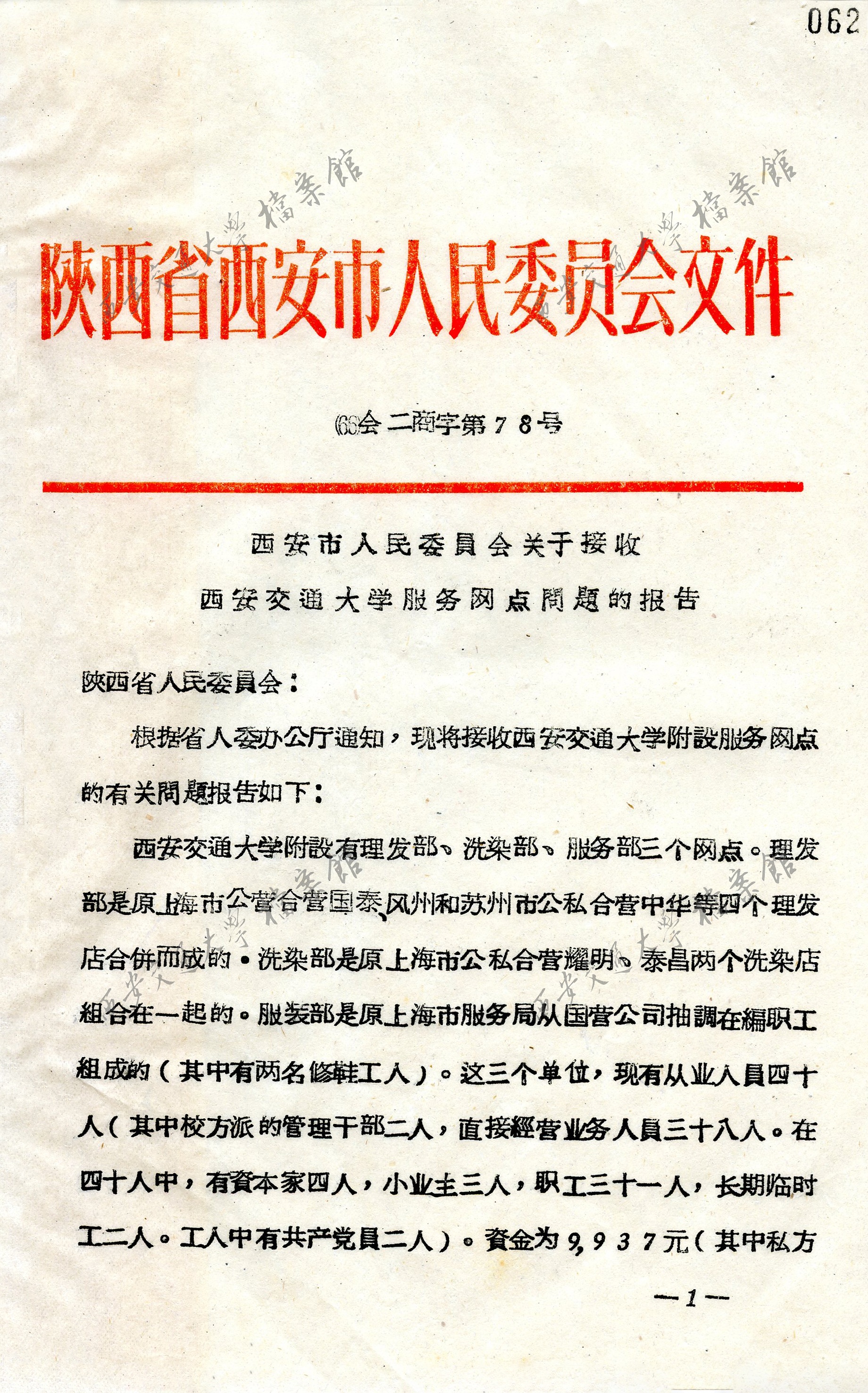 西安市关于接收西安交通大学服务网点问题的报告(1966年9月16日)