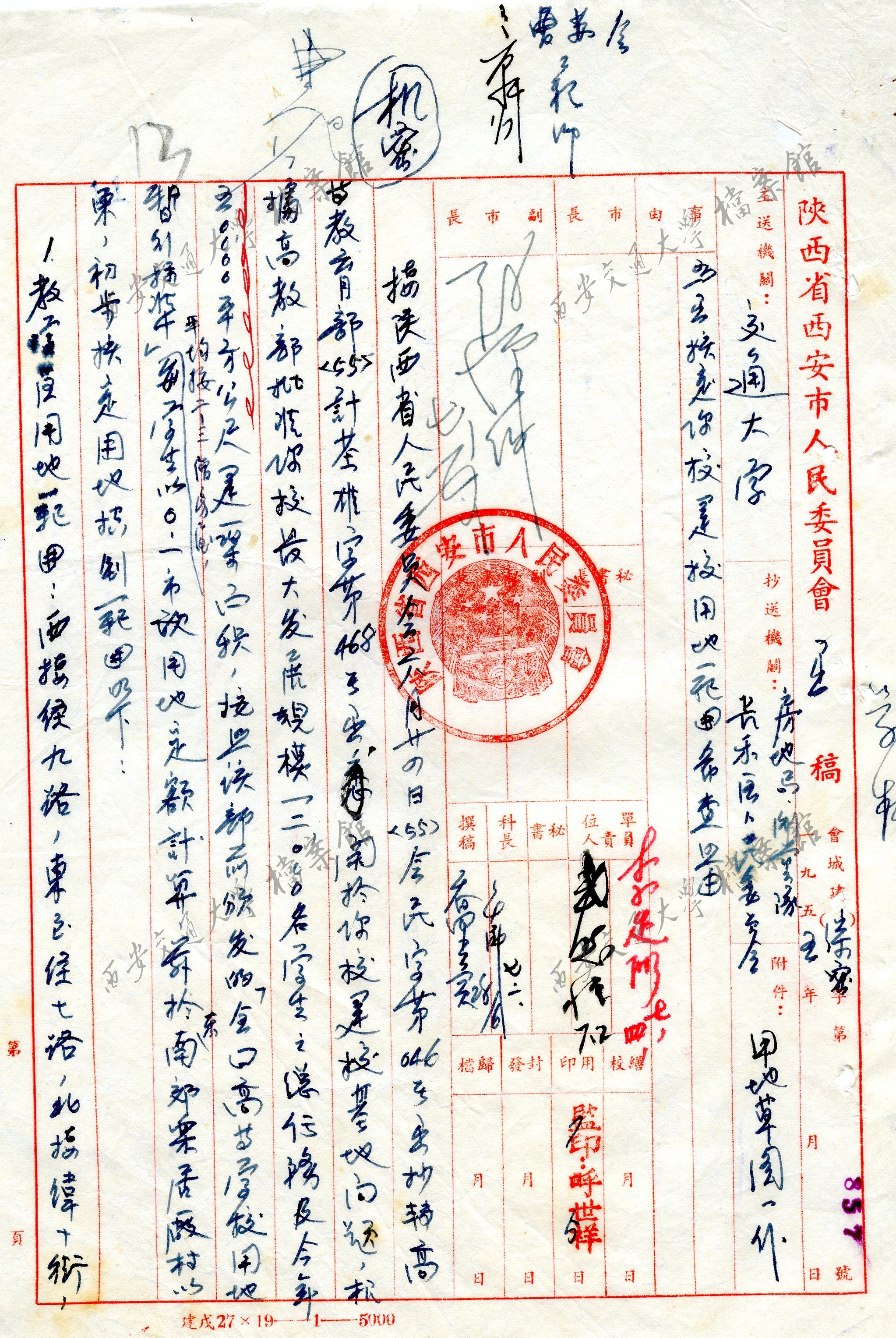 陕西省西安人民委员会函复核定我校建校用地范围事由(1955年)
