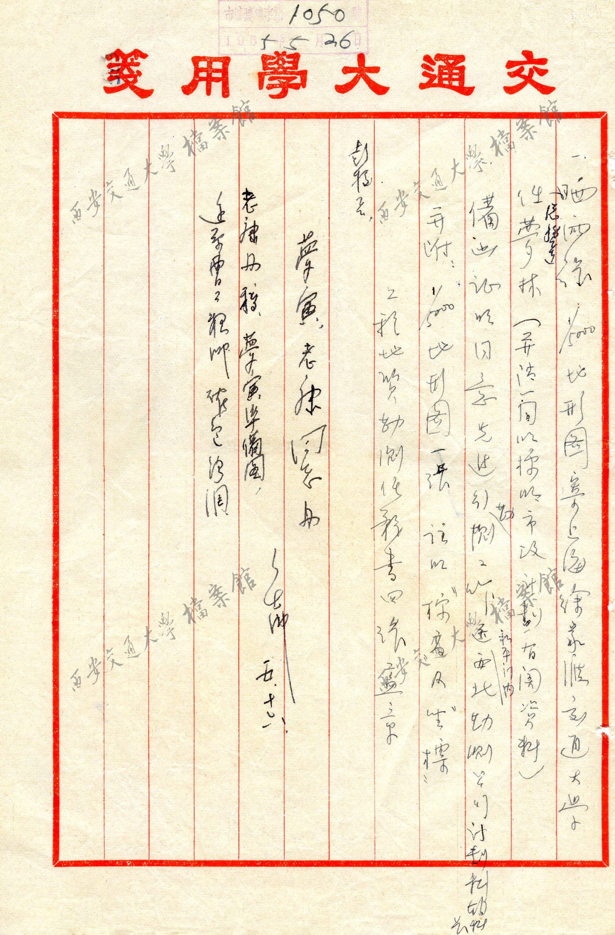 西安市城建局批复我校先行勘测事宜的意见及我校上报函(1955年5月26日)