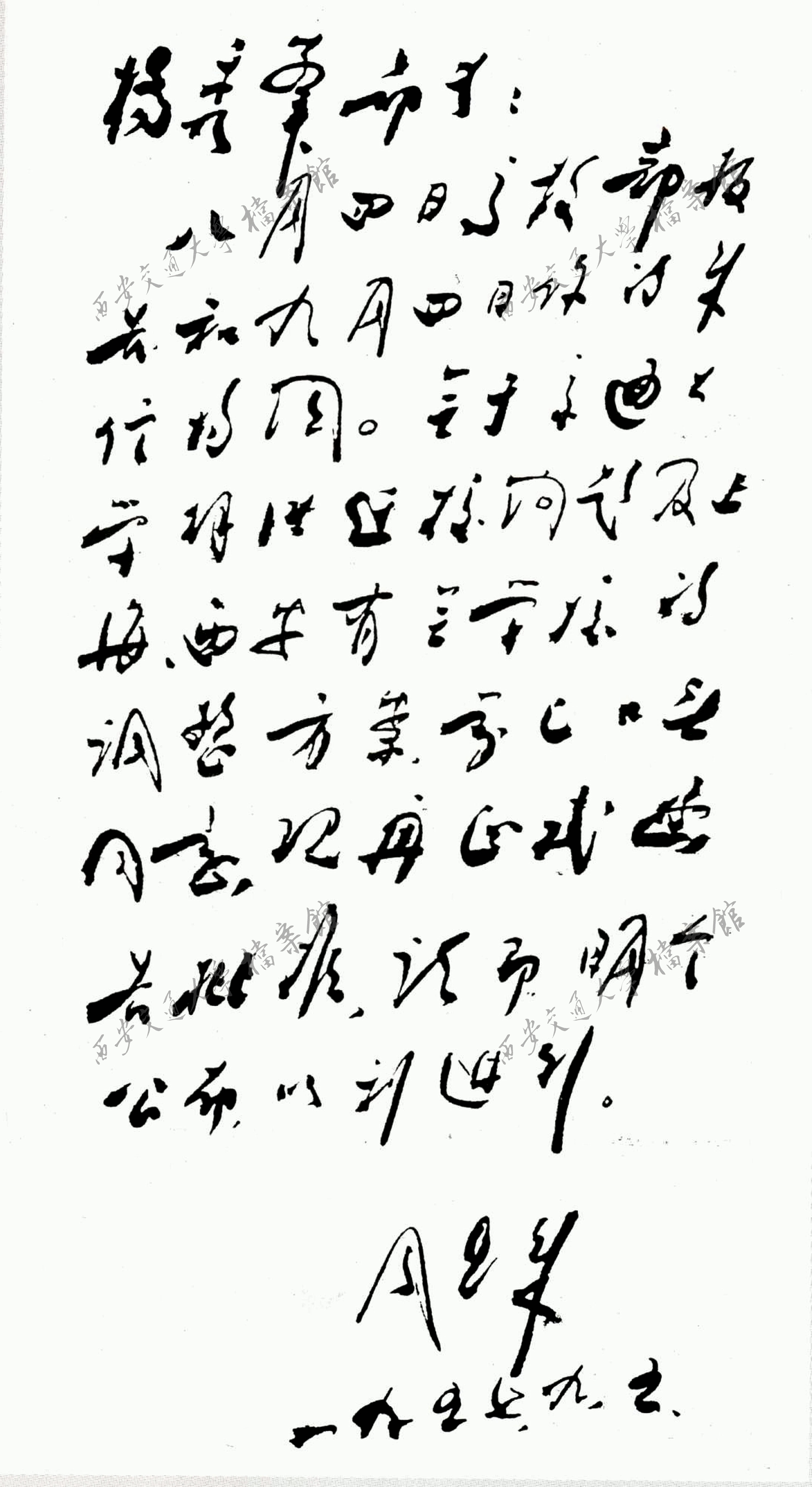 周恩来总理批准交通大学迁校方案的函件(1957年9月5日)