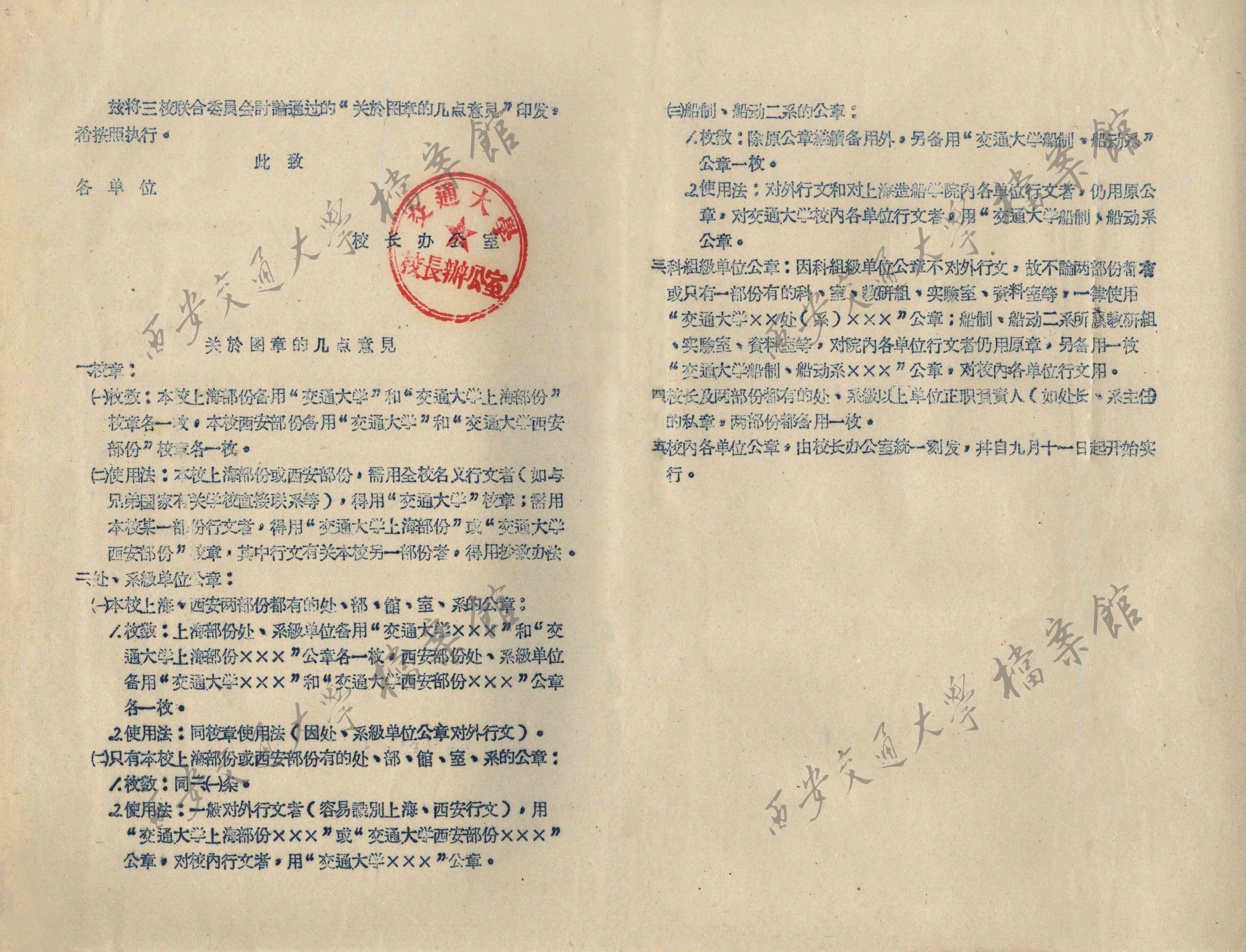高教部关于交通大学校章的刻制问题(1957年9月7日)
