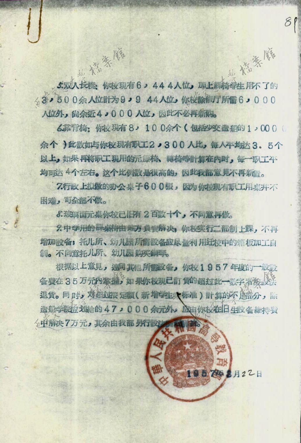 高教部核定1957年迁校中的安家补助和棉衣补助问题和一般设备费预算(1957年2月19日)