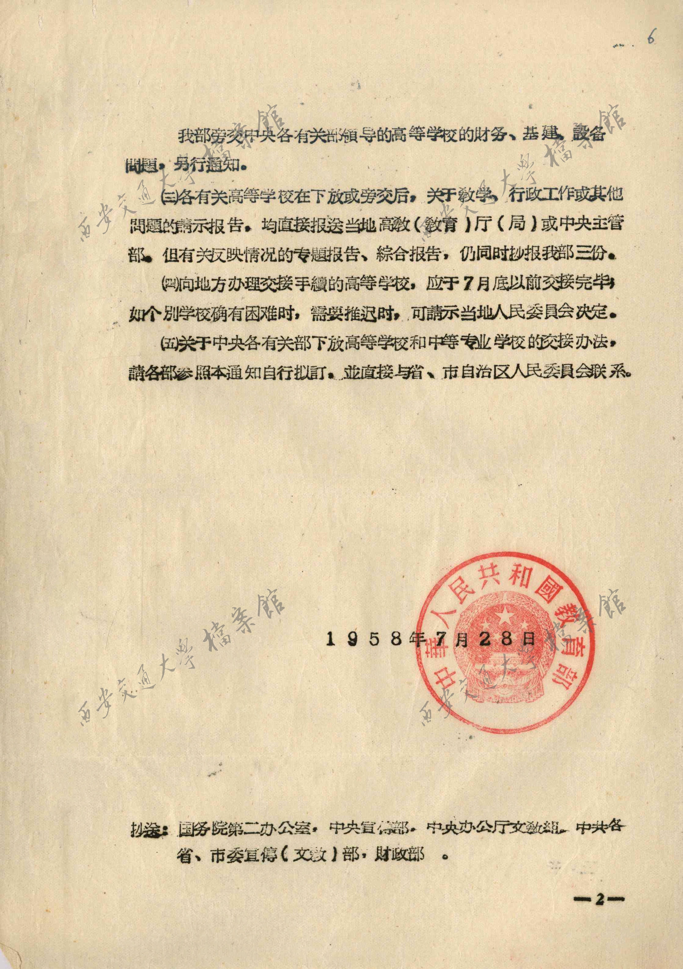 教育部发陕西省高教局——《关于西安交通大学校印制发问题函件》、陕西省高教局关于西安交通大写的校印制发问题、《我校校印印模的函件》(1959年9月17日)