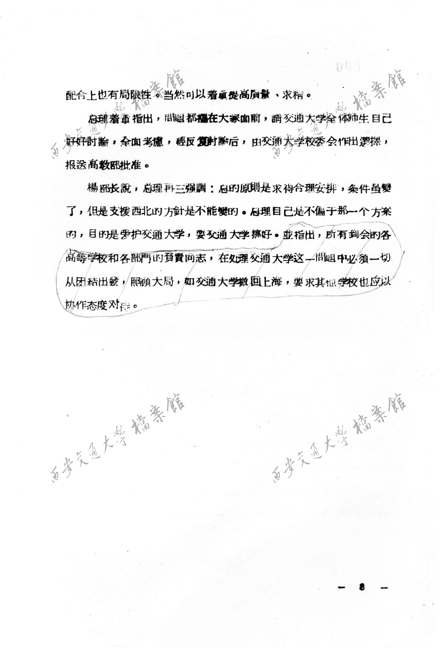 杨秀峰传达周恩来对交通大学迁校问题的指示(1957年)