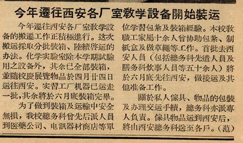1956年5月31日,1000多吨的教学用品和公私家具已运抵西安。1956年5月31日31日,中共西安市委召开常委会,讨论交通大学由上海迁来西安的有关问题,决定成立“西安新建高等学校迁校工作委员会”,负责处理高等学校迁校过程中的各项具体工作事宜