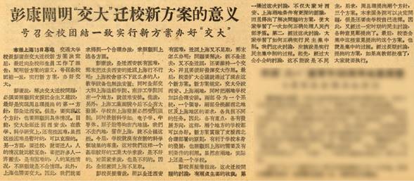 1957年7月17日,“交大分设西安、上海两地,两部分为一个系统,统一领导”的新方案形成后,彭康校长对新方案进行解读,阐明新方案的意义,号召师生团结一致实行新方案,办好“交大”