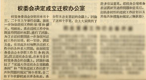 1957年2月20日,校委会决定成立迁校办公室,并讨论通过了《迁校办公室组织条例》和《有关迁校工作若干具体问题的规定》