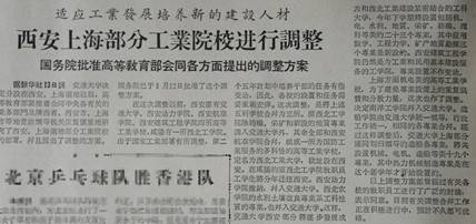 1957年9月12日,国务院发出习字第110号文《关于交通大学迁校问题的批复》,称:“国务院同意你部8月4日所报关于交通大学迁校及上海、西安有关学校的调整方案,希即照办。”高教部8月4日报告提出:交大分设西安、上海两地,两部分为一个系统,统一领导。西安部分完整地设置机、电方面主要专业,逐步添设新技术和理科专业,并发展成理工大学;上海部分办好机、电专业,着重提高教学质量。计西安部分设21个专业,上海部分设15个...