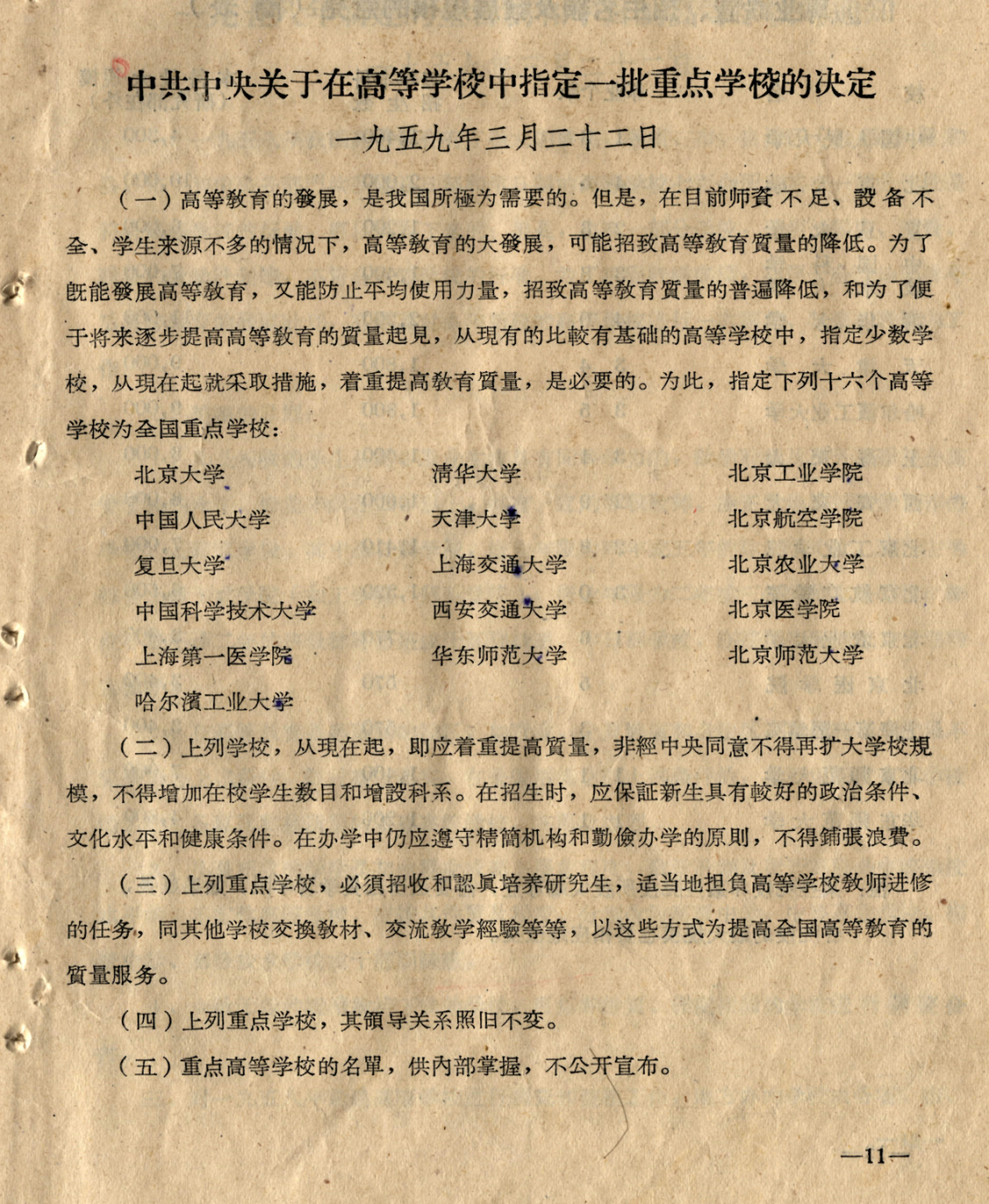 1959年3月22日,中共中央在高等学校中指定16所重点学校,西安交通大学名列其中。
