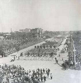 1959年10月在庆祝国庆节期间,西安交通大学校名第一次出现在群众游行庆典活动中